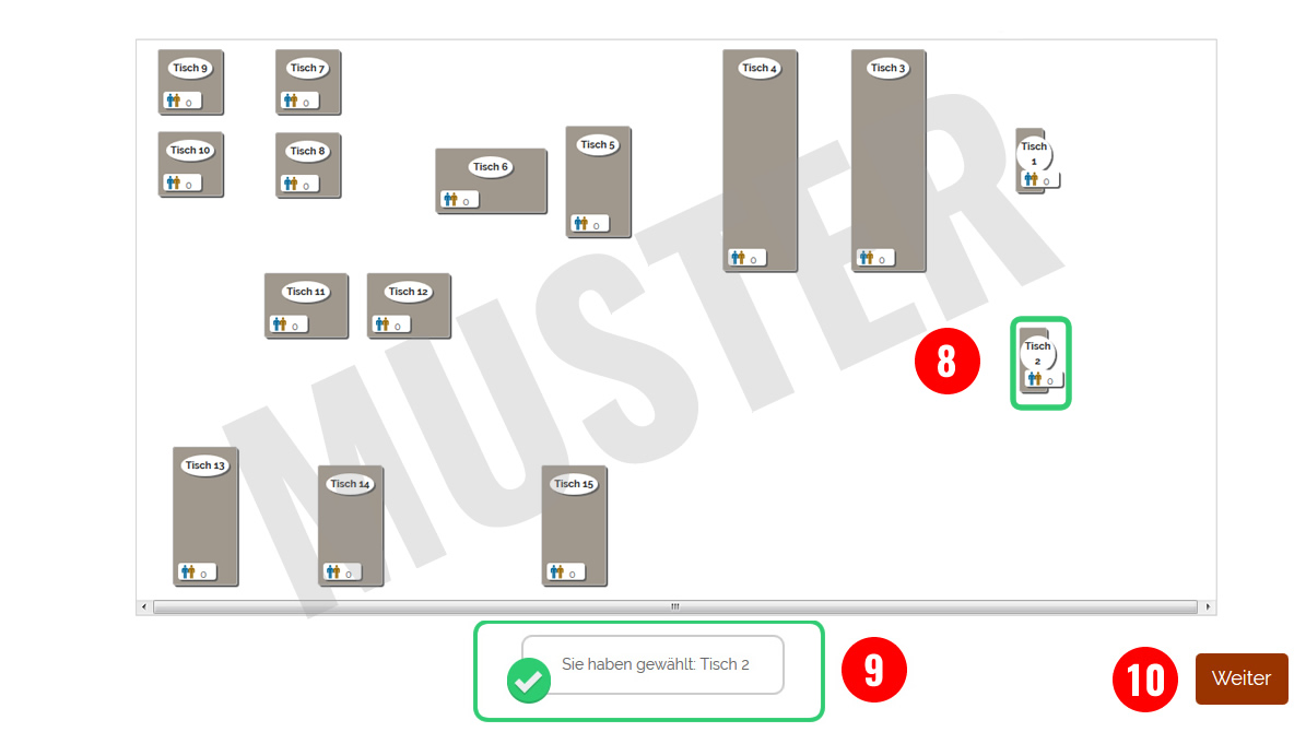 9. Sie erhalten einen Hinweis, welcher Tisch von Ihnen gewählt wurde.
