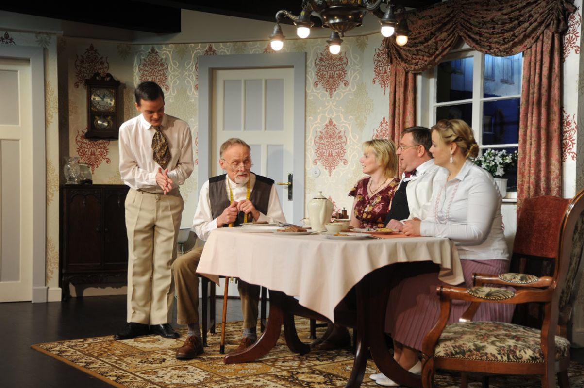 Sparsamkeit kann eine Tugend sein, doch bei dem alten Schneider Nörig ist diese Tugend in Geiz umgeschlagen. Pfannkuchen mit verschiedenen Sorten Marmelade ist für ihn die pure Verschwendung. Durch diese Sparsamkeit gerät er in die Hände des habgierigen Schneides Krup, eines alten Junggesellen und dessen Schwester Manda, einer giftigen älteren Jungfer. Diese beiden falschen Menschen geben sich als seine Freunde aus und Nörig bringt Ihen volles Vertrauen entgegen. Währenddessen ist er fest davon überzeugt, dass seine Töchter und Schwiegersöhne, allesamt prächtige Menschen, denen er das Leben schwer macht, ihn betrügen.